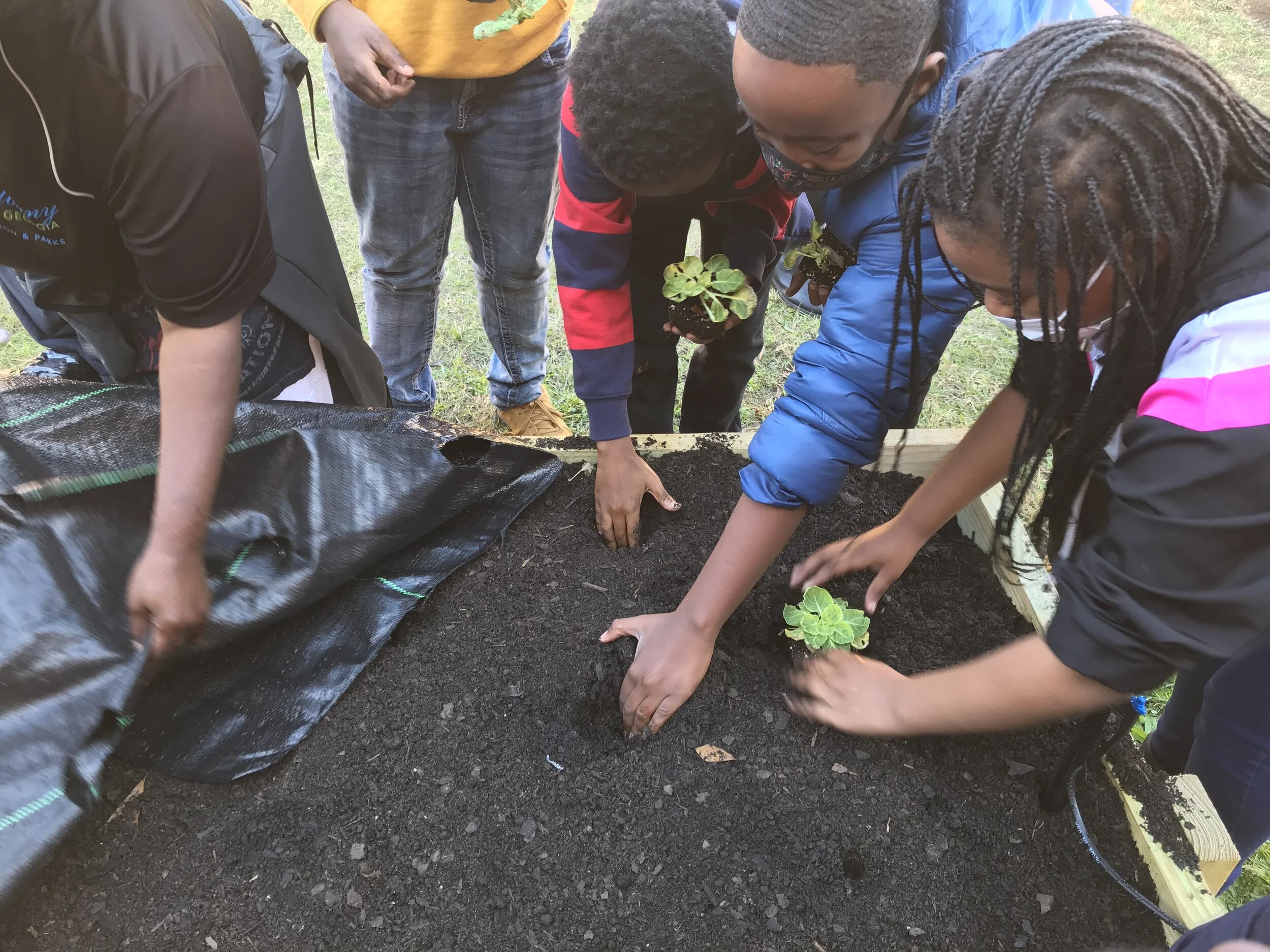 Ms. McCary’s 5th grade class planting brussels sprouts at Turner Elementary School.